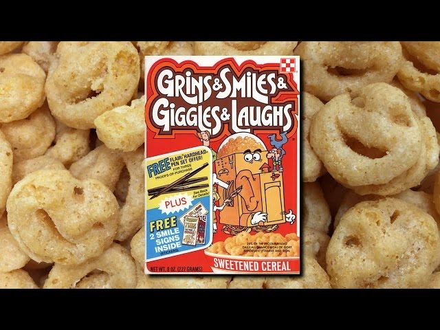 Released in 1976, Grins & Smiles & Giggles & Laughs was a quirky cereal from Ralston. According to the story on the box, Cecil the robot would make the cereal whenever someone made him grin, smile, giggle, or laugh. Each box included fun prizes like joke books and paint kits, all for just 72 cents. Despite its charm, the cereal didn’t last long and was discontinued after only a year.