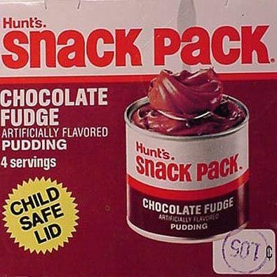 In 1968, Hunt’s introduced Snack Pack pudding in eight flavors, including banana, chocolate, vanilla, and butterscotch. It was an instant hit with parents in the 1970s, offering a quick, mess-free treat for kids that was also portable. However, the sharp metal lids on the cans posed a safety hazard. A safer, more child-friendly can was introduced a few years later, followed by Snack Pack Jack with his pudding can-shaped cap. By 1984, these changes became the standard.