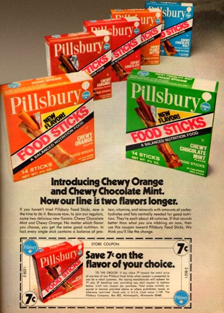 Manufactured by Pillsbury, Space Food Sticks were originally developed as a snack for the Apollo Space Mission, designed to meet government nutritional standards. Unfortunately, they tasted like dog food. In 1971, after Aldrin and Armstrong walked on the moon, Pillsbury revamped the recipe, adding more flavor. White Wings then packaged them in space-age foil, enhancing the astronaut appeal and turning them into a popular snack.