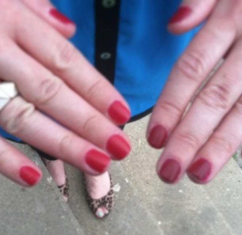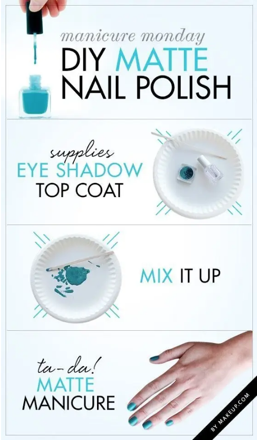 Matte is constantly going in and out of style, and it can get expensive to buy a matte version of every color in your collection. By adding a little eye shadow (of a similar color, or to a clear top coat) you can make any polish matte on your own!