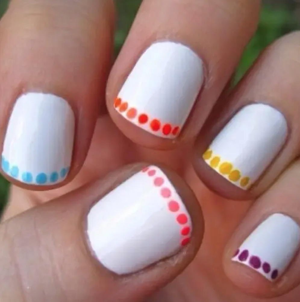 For a simple and more understated polka-dot pattern, dot just one line of dots at the tips of your nails.