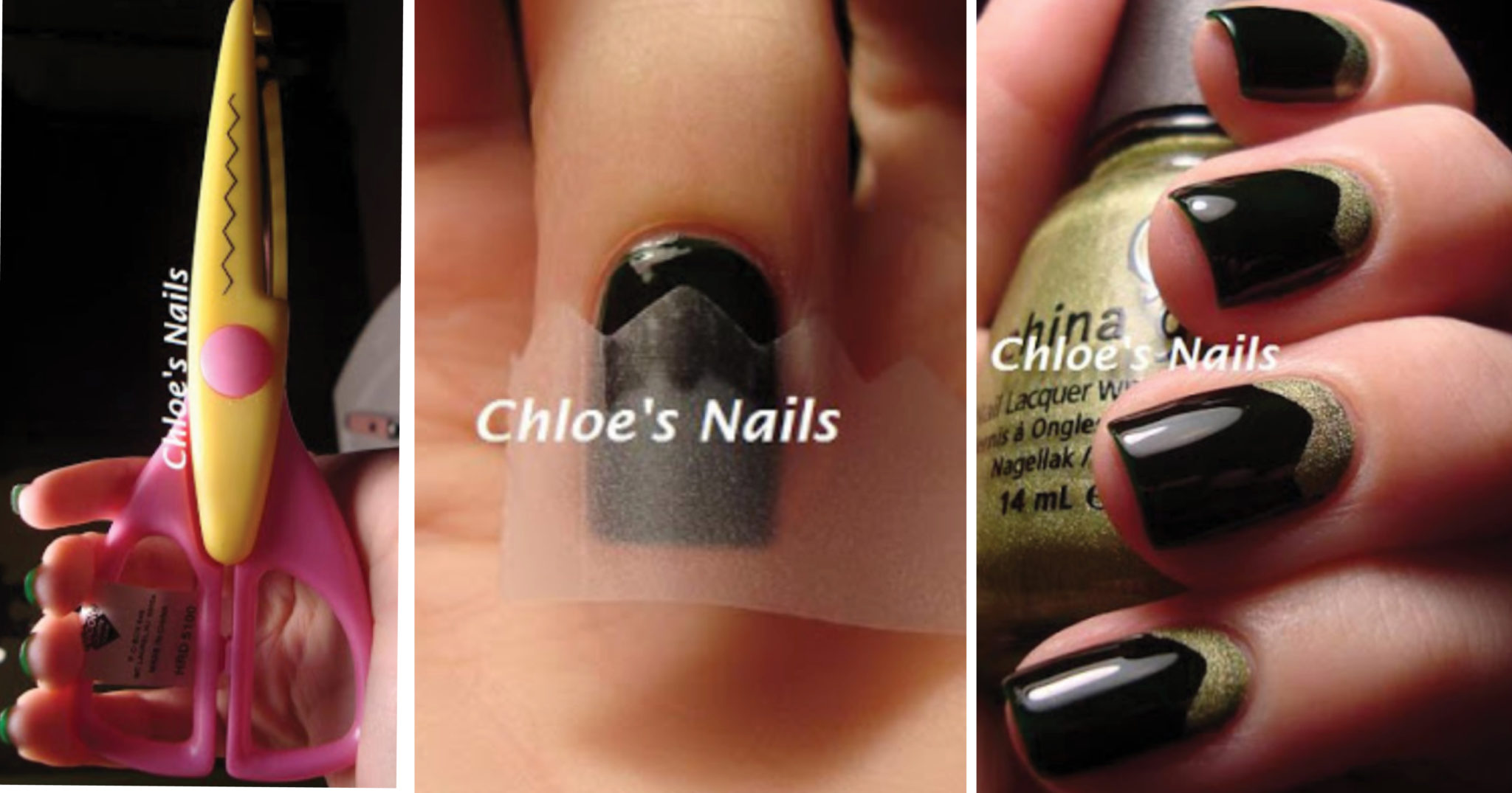 Get out your silly scissors and use the cutting pattern on some tape to create interesting lines on your nails. Apply one color as a base coat, wait until it’s fully dry to apply the cut out tape, and then apply the second colour over top.