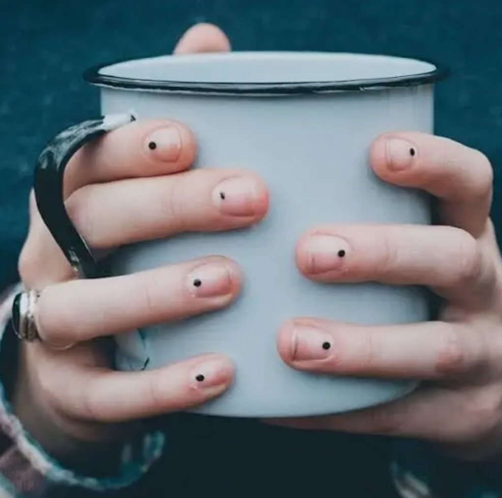 Don’t have time to paint your nails in full? Just add one cute dot at the base of the nail for a cute and instant look.