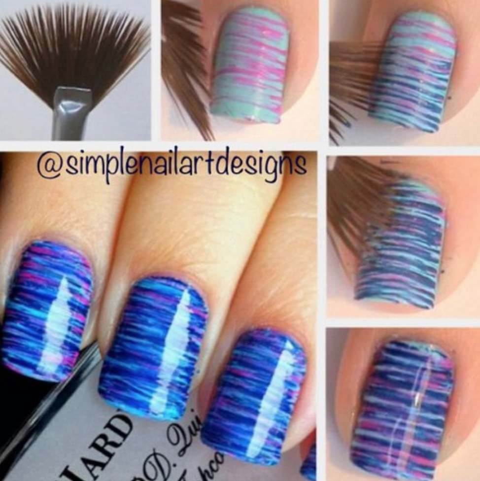 Use an old paint or makeup brush, spread out the bristles, and use it to swipe nail polish along your nails for a thin stripey look.