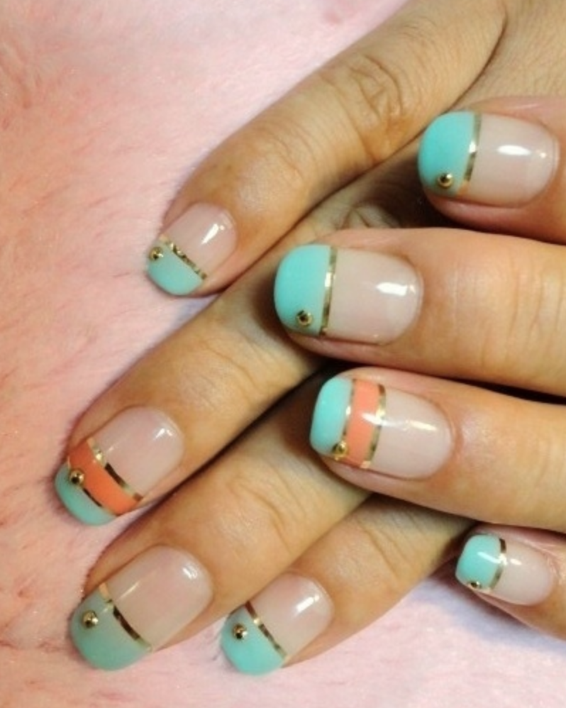 Instead of a french tip, try a french nail bed, also known as Ruffian nails. Paint a base coat, then add a thin layer of your second colour to accent the bottoms of your nails instead of the tips.