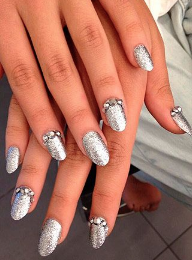 Adding some rhinestones to an already rock and roll metal look makes a big difference! You can buy some rhinestones from any craft or dollar store, and they can be easily applied with nail glue. Try applying them to the base of the nails, the tips, or anywhere else you fancy.