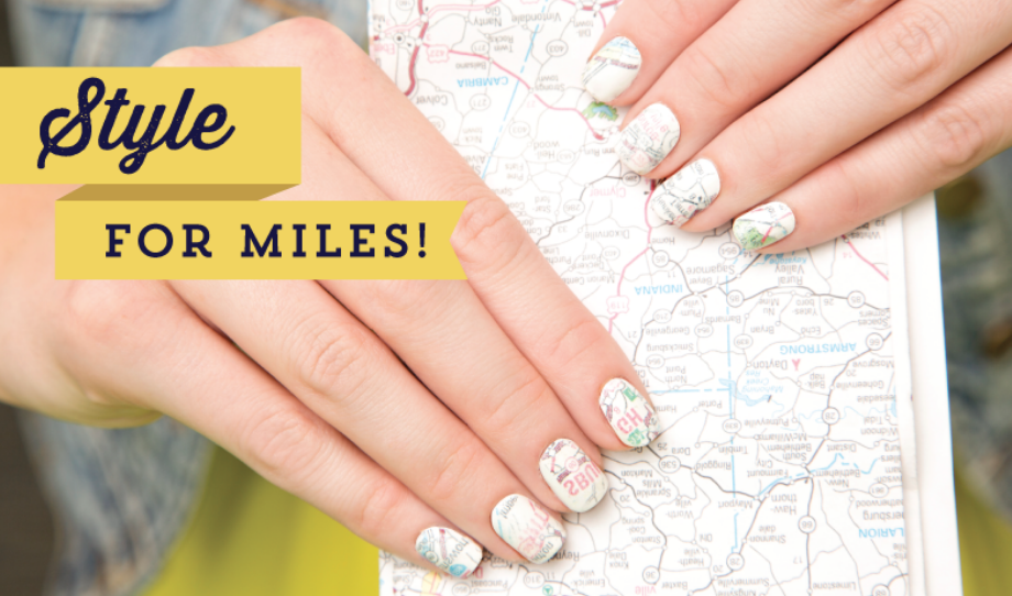 A cute nail idea if you’re a travel lover! Paint a white base coat and make sure it’s completely dry before the next step. Dip one finger at a time in rubbing alcohol and then apply a small piece of a map to the nail so the ink can transfer. Apply a top coat to keep the print solid without fading or smudging.
