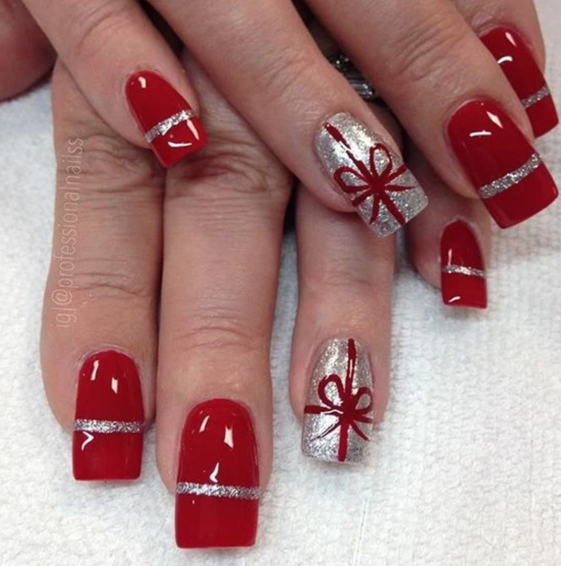 A perfect holiday touch! Use festive colors and draw on ribbon with or two simple lines, and a bow, which requires a little more delicate handiwork. To make it easier, glue a rhinestone bow to the centre where the two ribbon lines meet! It’s easier, and looks more impressive at the same time.