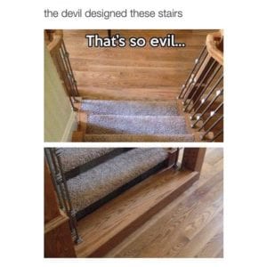 Algunas veces te darás cuanta que, incluso los mejores diseños, no han sido tan bien pensados. O es eso, o pensarás que muchas de las instrucciones se perdieron durante la comunicación entre el diseñador y el contratista que construyó la escalera. En algunos escenarios, ambas cosas pueden suceder y así es exactamente como luce.