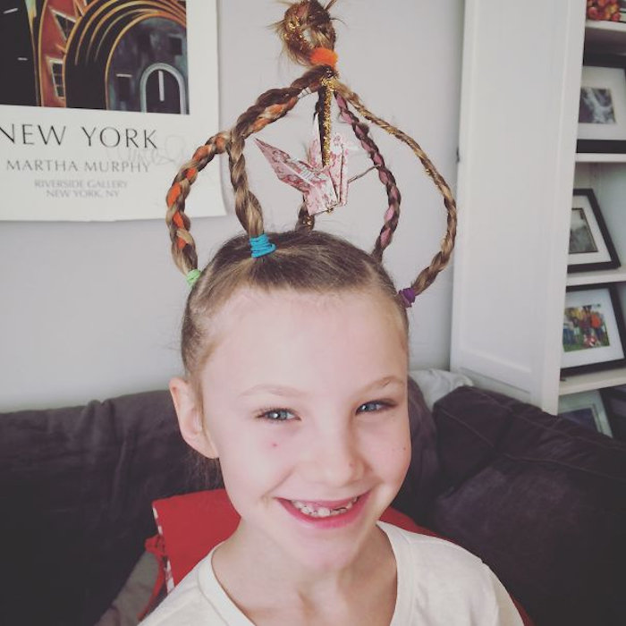 Okay, the style itself isn’t terrible creative. Two simple braids, right? But you have to admit the balloons take that do to a whole new level—literally.