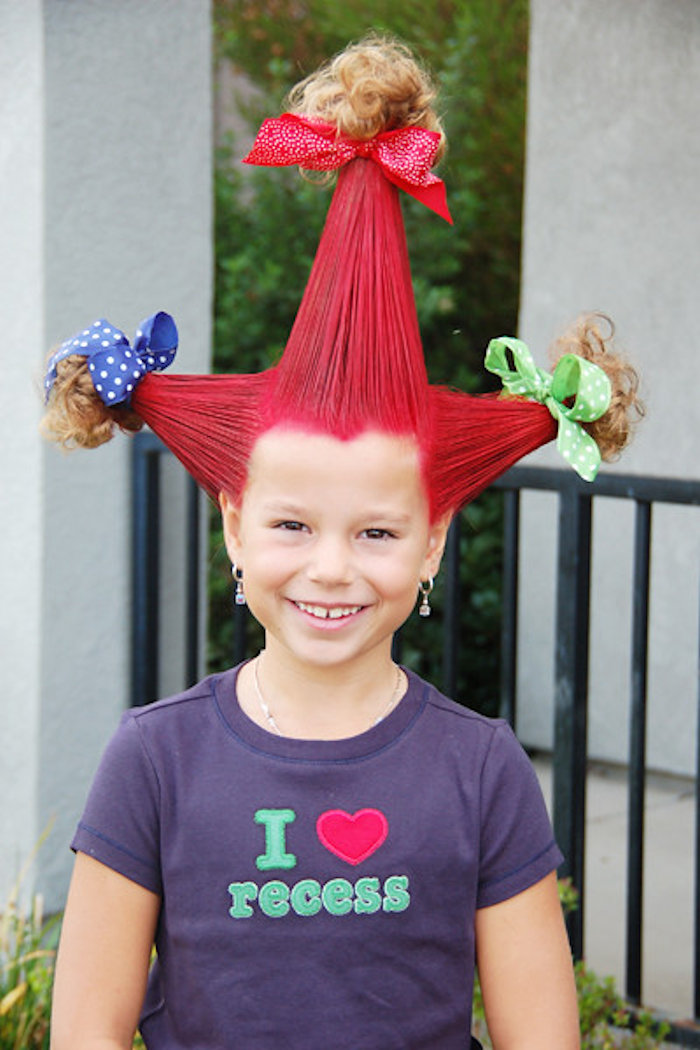 Crazy hair day is like a bad hair day, but you actually call the shots on what your hair looks like. Dying your hair is nice and all, but on Crazy Hair Day, the goal is to really put the word “Crazy” in there.