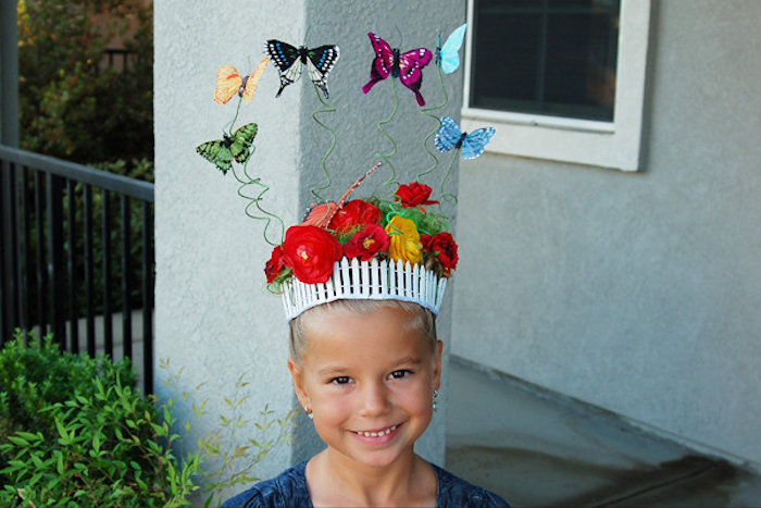 I was going to make some rhyme about them being on her head, but I stopped myself. But what a beautiful arrangement. There’s even a picket fence and butterflies.