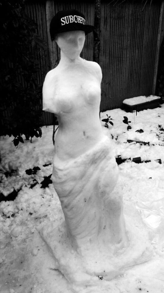 Venus de Milo! Adding their own little special touch with a hat completes their greek snowman: Venus with style.