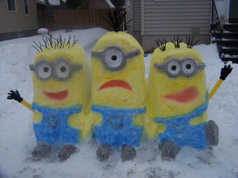 For all you minion lovers this snowman build is for you. Not only did they build the minions but colored them too!