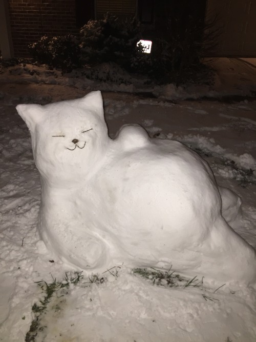 We can all appreciate a good fat cat. This family decided to recreate theirs out in the snow. Although goofy looking we’d say they came pretty close to matching the look of their actual cat.