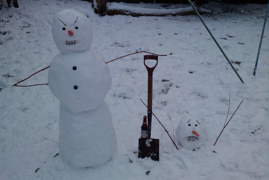 Sometimes you just have to make do with what’s lying around. Just as these builders made use of grass and some sticks lying around to bring their snowman to life. We appreciate the effort.
