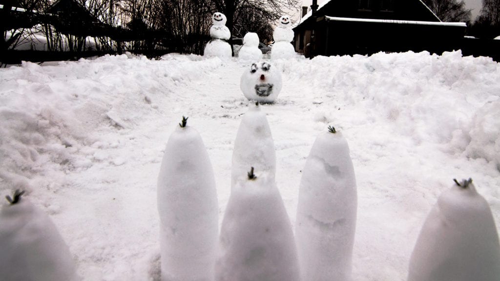 Turns out even snowmen like to bowl. Check out this backyard that has been flipped into a bowling alley for snowmen. If you look closely you’ll see the two snowmen are using their friend’s head as the bowling ball.