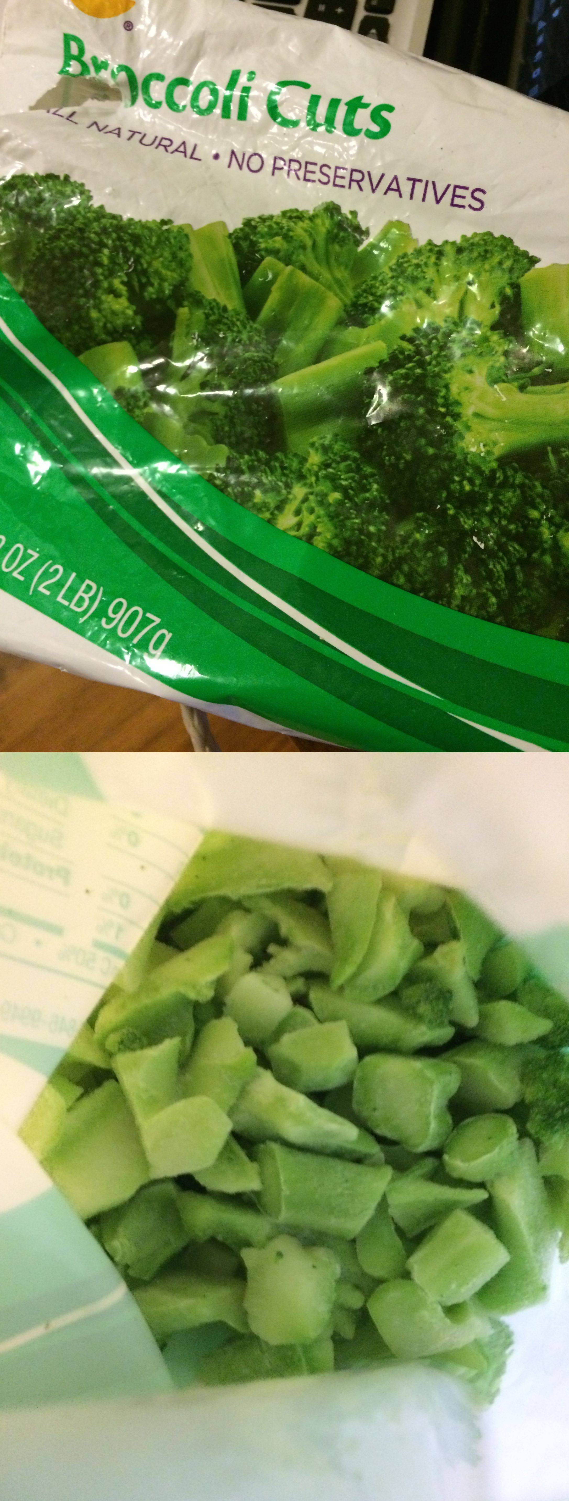 Everyone knows that the stems are the worst part of broccoli florets. Here we have a whole bag of them. The picture on the front shows the opposite.
