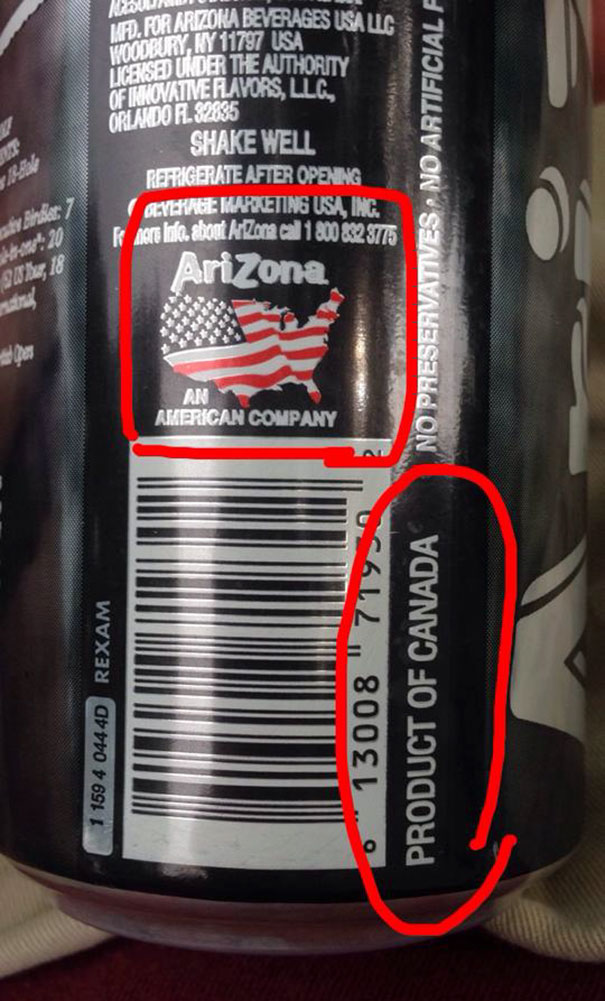 Most people assume Arizona ice tea, an American company, makes their tea in America. Although, that isn’t always the case. This can was produced in Canada.