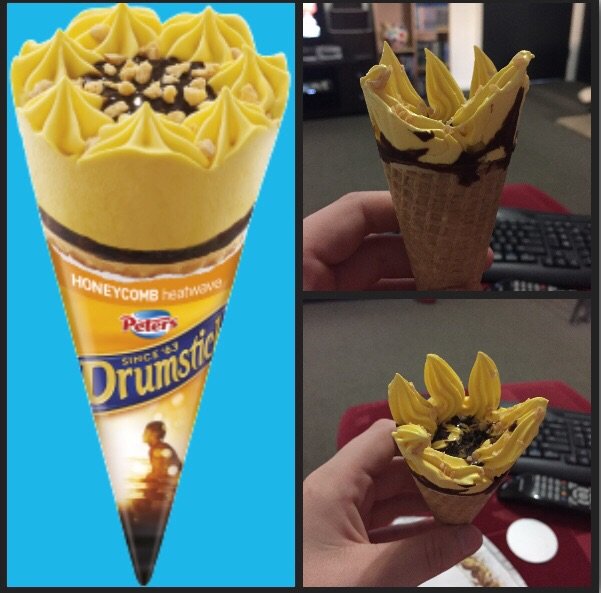 Honeycomb ice cream sounds pretty delicious. Although, there wasn’t really much of it once the ice cream drumstick was opened up. There was just a small crown of ice cream.