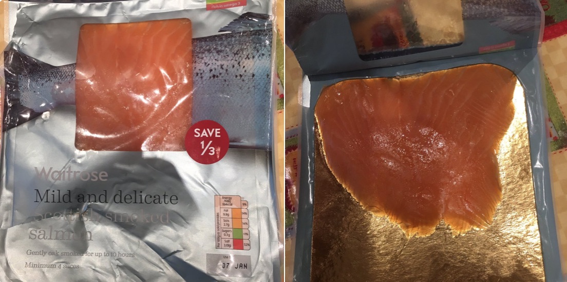 The consumer thought it was going to be a big package of salmon, but it was missing about 2/3 of the fish. As far as we can tell, it doesn’t even look like a normal fillet