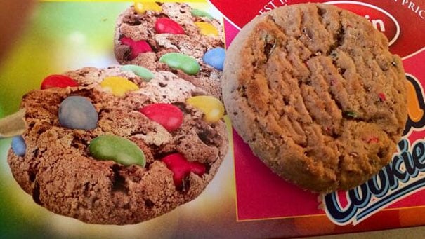 Is it false advertising when the cookie doesn’t look like the picture on the box? We could understand if it wasn’t a perfect representation. However, there aren’t even any visible candies in it.