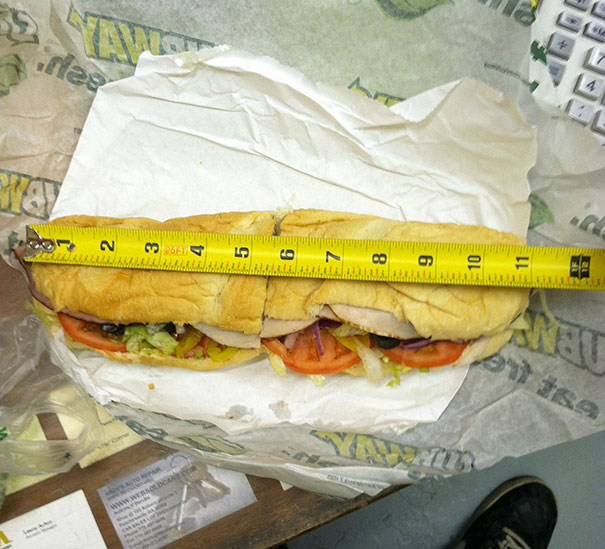 Have you ever measured your twelve-inch Subway sandwich? This person did. They found it came up one inch short!