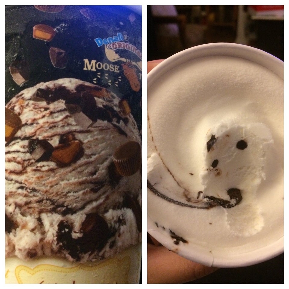 This moose tracks ice cream is missing a lot of the moose tracks. There is basically no fudge and peanut butter cups. It only has the vanilla ice cream.