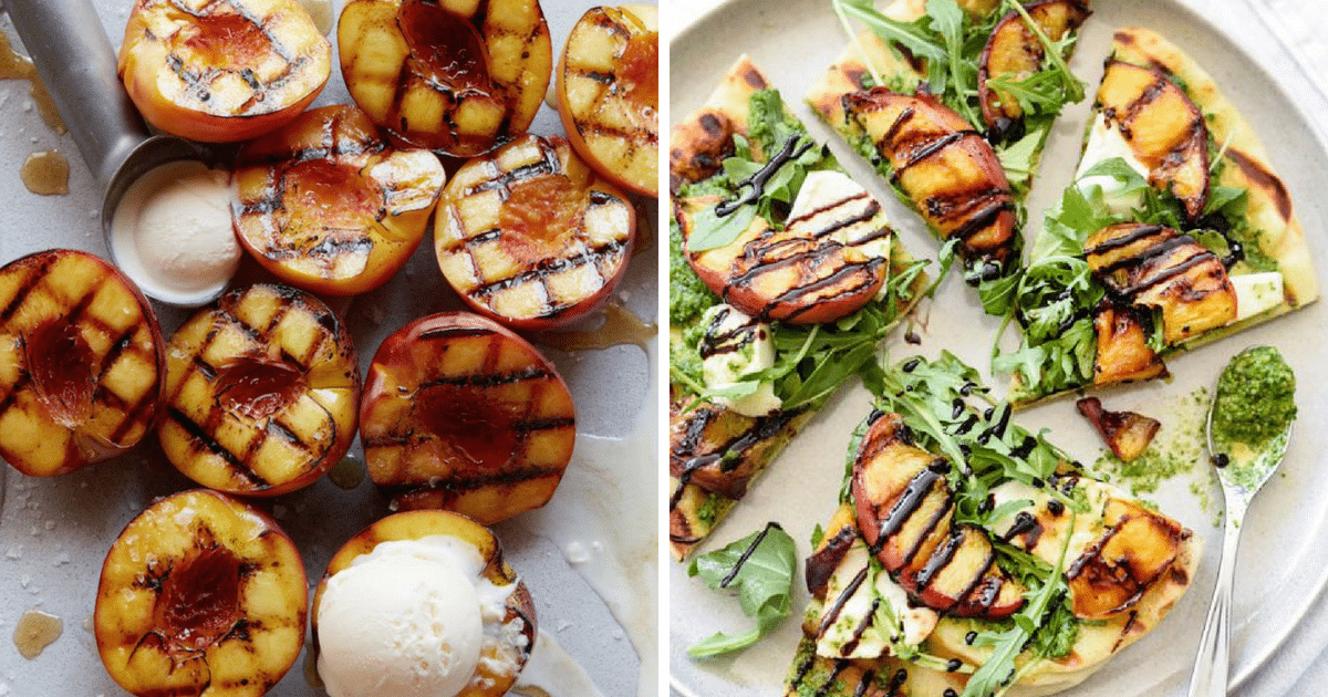 For the perfect dessert, cut a peach in half, remove the pit, grill the peach halves, and add a scoop of vanilla ice cream on top. You can add grilled nectarines for a more citrusy taste, and drizzle with honey, sprinkle on some sea salt, or whatever else you can think of, to add to the already flavorful combination.
