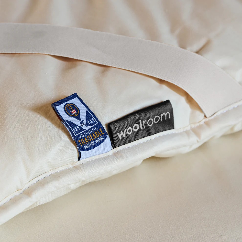 The Woolly Sprung Mattress Topper leans into a specific kind of luxury. Instead of foam or micro springs hidden inside of the topper, it has a dense layer of British wool parried with pocket springs. The springs lifts and adds structure, and the wool brings that natural softness and temperature regulating feel wool is know for.