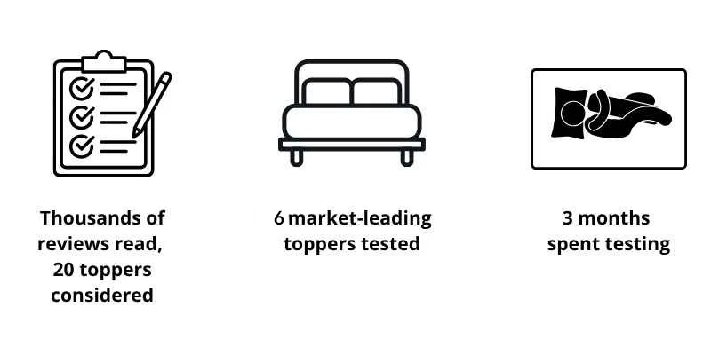 I went and tested 6 of the best firm mattress toppers to see which one was the best. My list ranks each one based on a few criteria:
