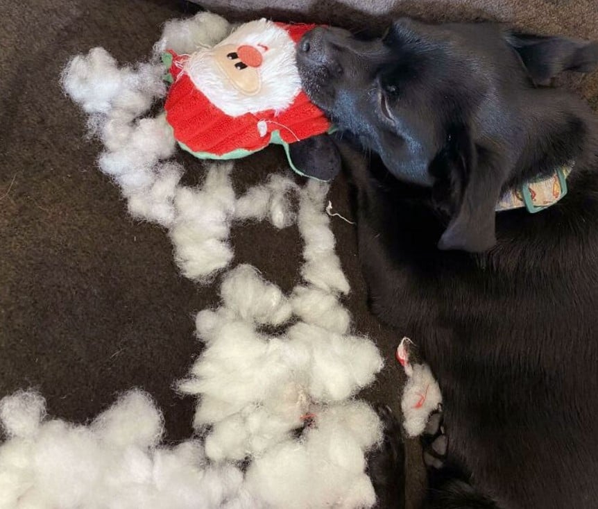 Christmas morning: our dog destroyed Santa, ripping out his stuffing, and then promptly fell asleep on his lifeless remains. Zero remorse. – Reddit