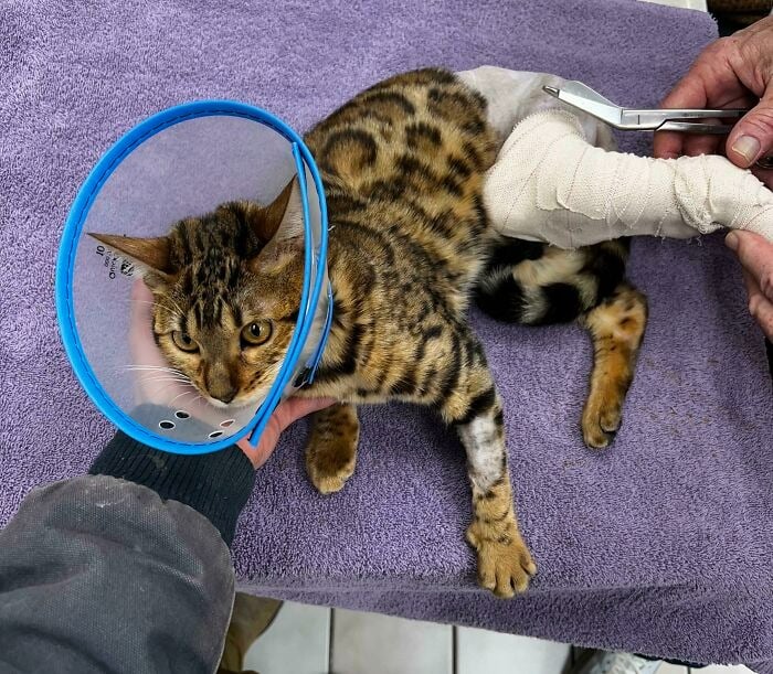 Our poor kitty broke her leg just before the holidays and needed surgery. Not the festive season we hoped for, but she’s on the mend! – Reddit