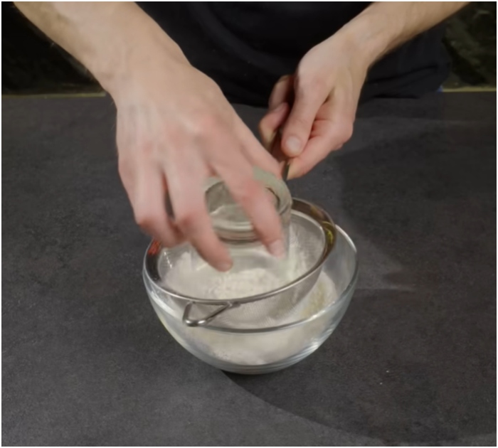 Next, the man showed how not to spill flour while sieving it by using a glass of water. The method was pretty straightforward and no rocket-Science involved.