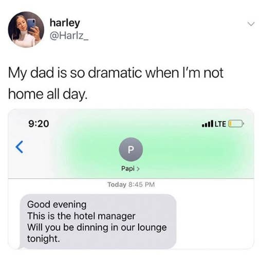 This tells me that she tends to forget to message dad regarding her plans.