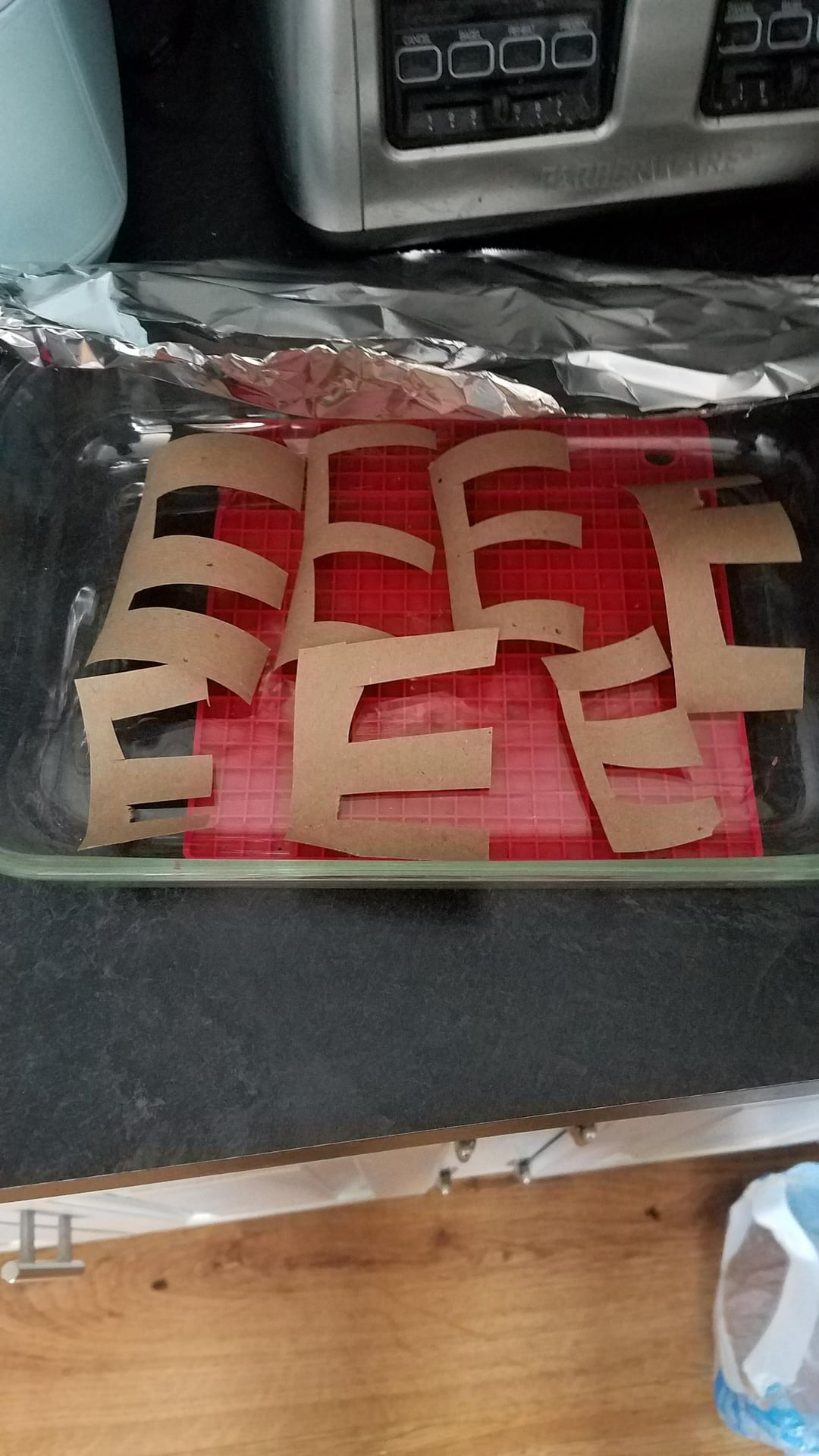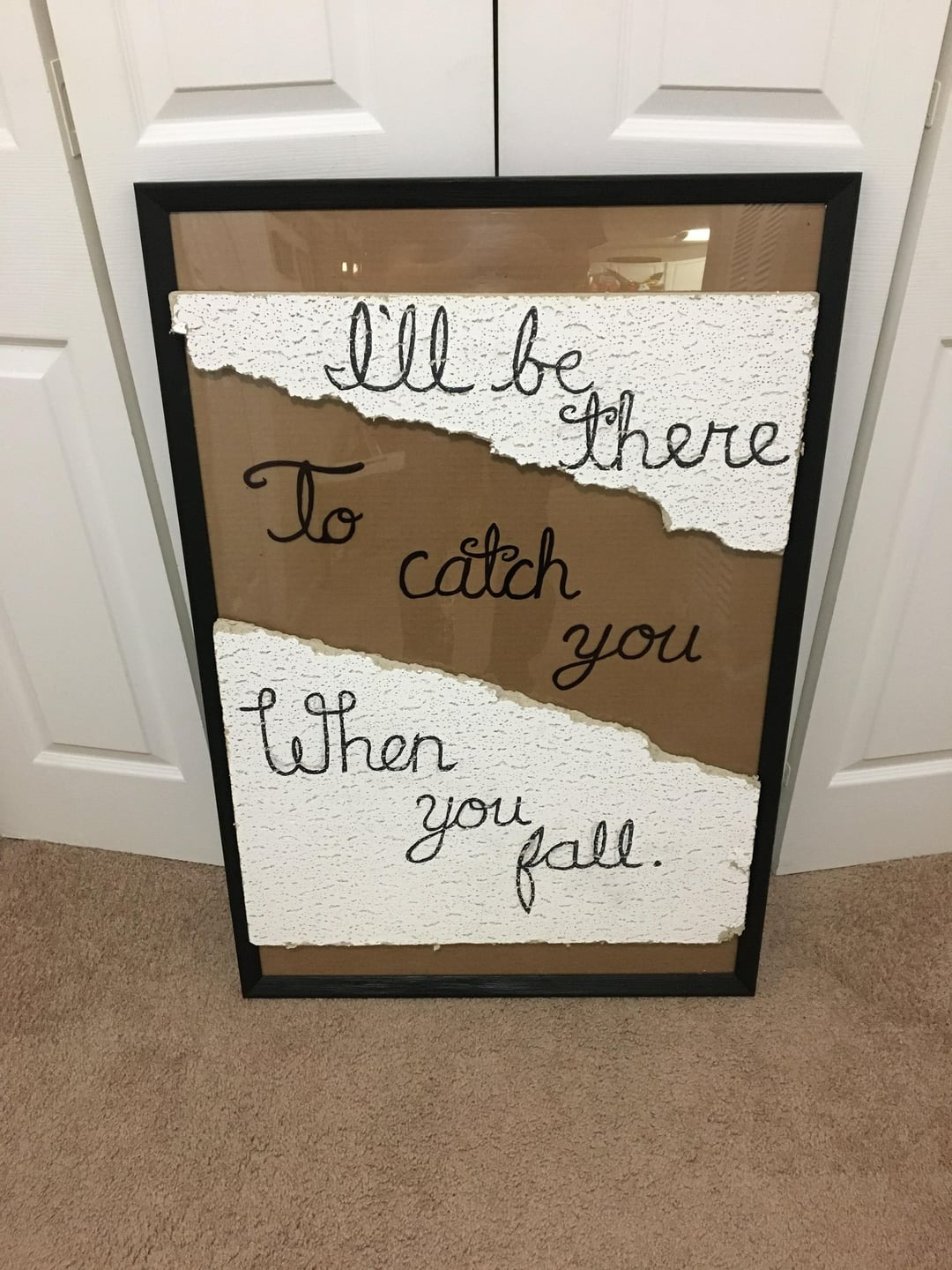 “The other day my dad fell off a 10 ft ladder and through a drop ceiling. I just happened to be walking by and was able to catch him on his way down. This was the tile he went through and now his Christmas present is finished.” – Reddit