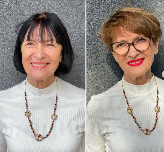 Who knew a hair transformation could make such a difference? The new cut and color suit her perfectly—she looks years younger!