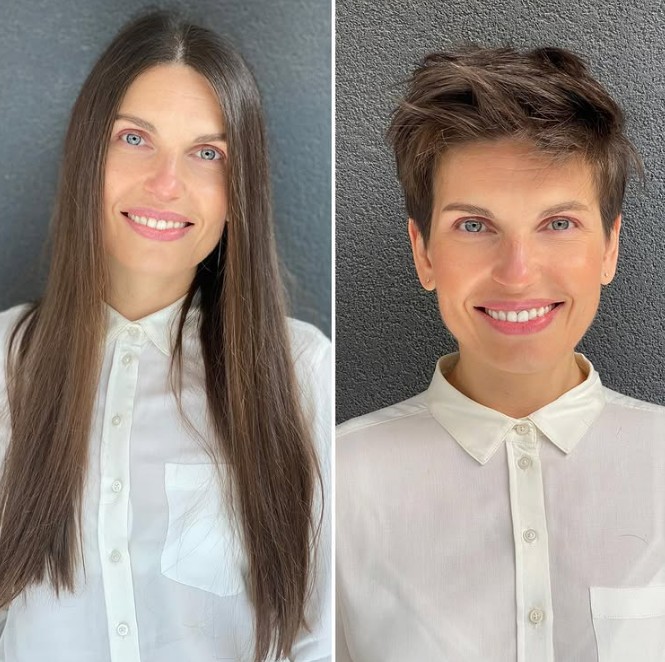 Not everyone can pull off super short hair, but she did it with confidence! Going from such long locks to this bold new look takes real courage—and she nailed it.
