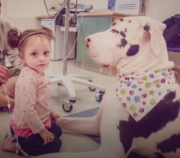According to Hill’s Pet, Great Danes are moderately playful, good with children, and known for their sweet, loving nature.