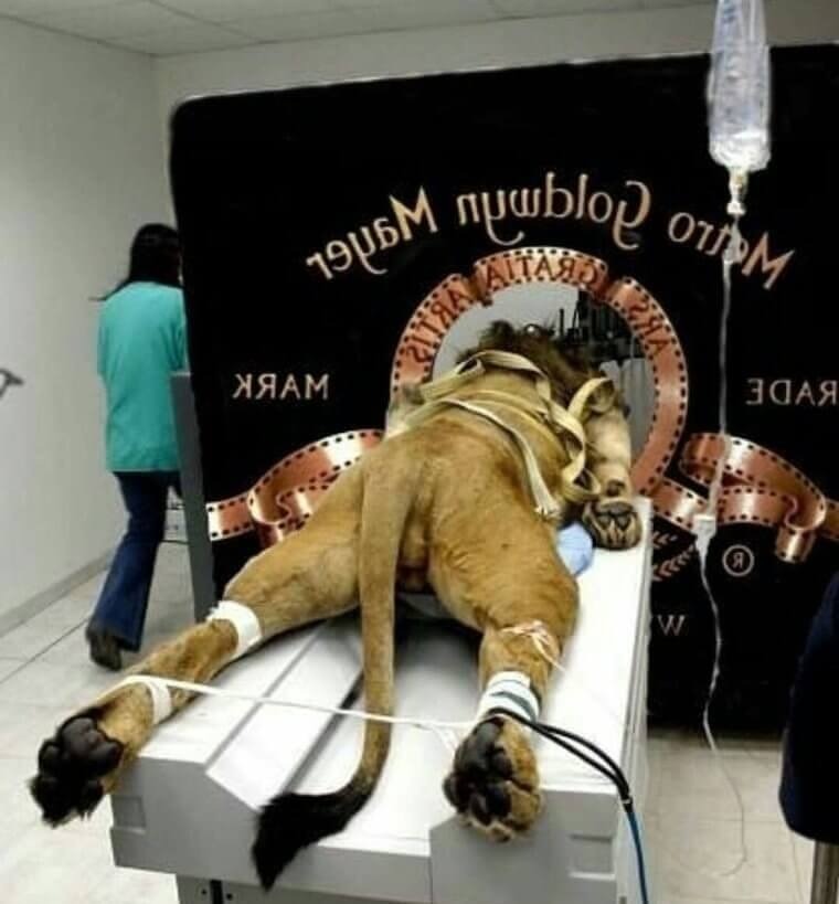 The iconic MGM lion logo that precedes our favorite movies allegedly involved a sedated lion, as suggested by a photo showing the lion with its head through the logo.