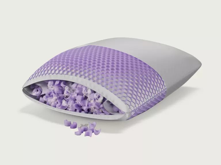 Unlike most of their products, Purple didn’t opt for latex in their pillow. Overall, we liked this pillow a lot. Inside, Purple used a proprietary Moon Foam to mold to your head, and this is fully adjustable. Additionally, they added neck roll chambers for edge support, and these are optional.