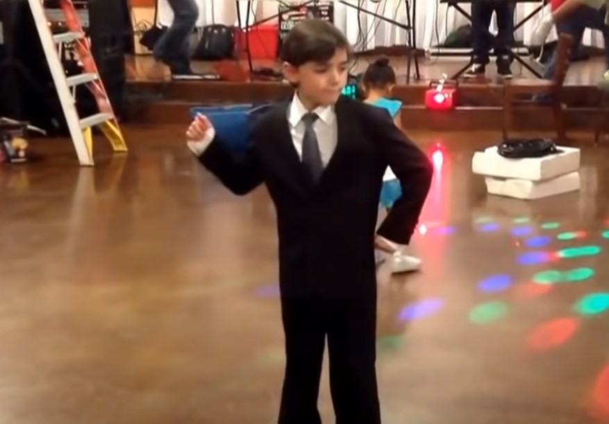 In this particular scene, the boy looked as sharp as ever, dressed in a dapper black suit and tie, already moving like he owned the dance floor.