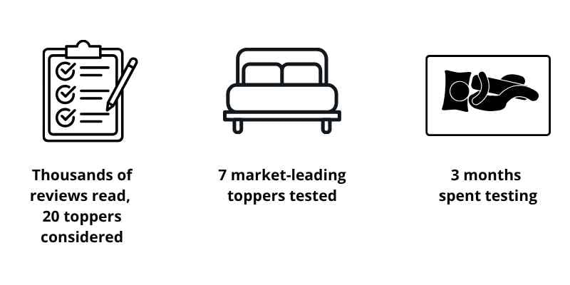 I went and tested 7 of the best firm mattress toppers to see which one was the best. My list ranks each one based on a few criteria: