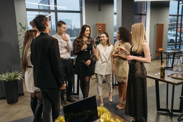Greet guests with a drink or a small appetizer as they arrive. This sets a festive tone and gives guests something to enjoy while waiting for others. It also provides a chance for guests to mingle and feel immediately included.