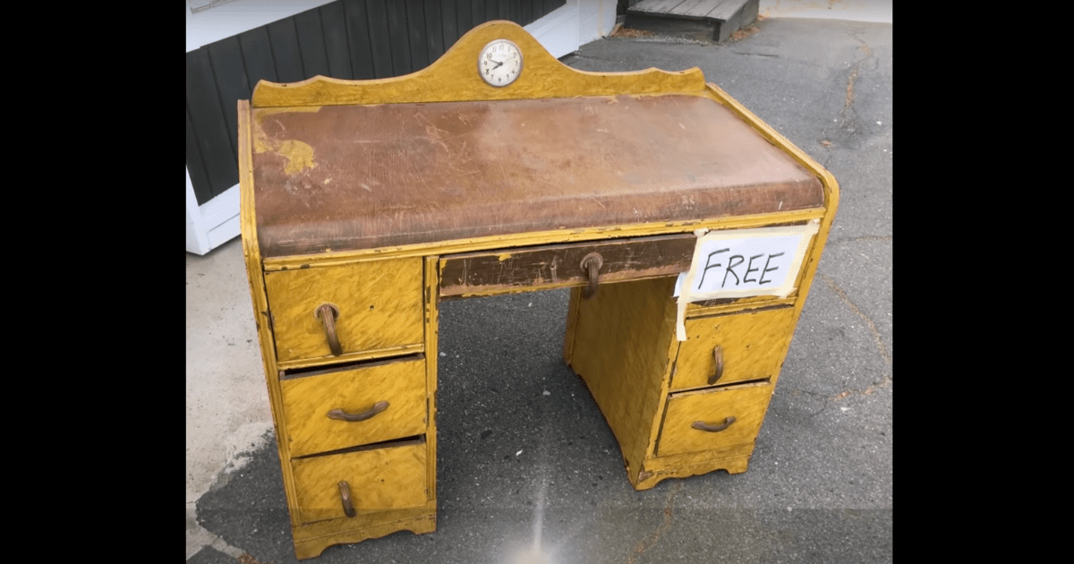 A man by the name of Ross Taylor came across an Art Deco vanity/desk. Not only did he find the piece at a yard sale but it also had a “free” sign on it.