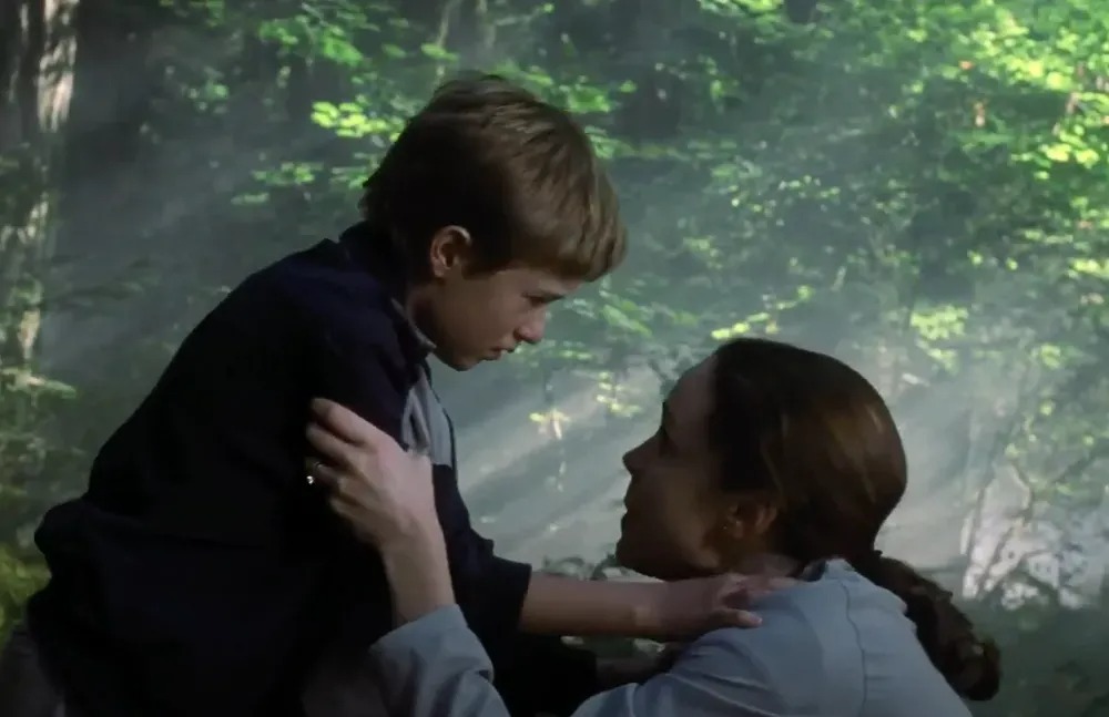 In a heart-wrenching scene, after events lead to concerns about David being a danger to his family, his mother abandons him in the woods, leaving him to plead and cry for her not to leave him.