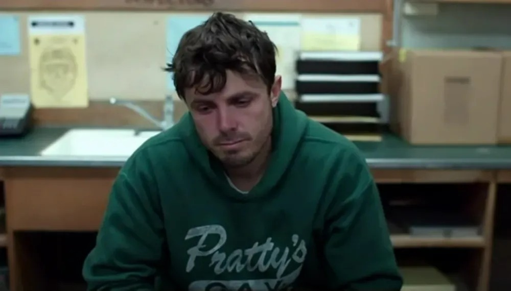 Lee breaks down at the police station in Manchester by the Sea (2016)