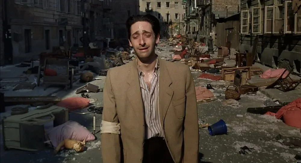 Szpilman walks through the ruins of Warsaw in The Pianist (2002)