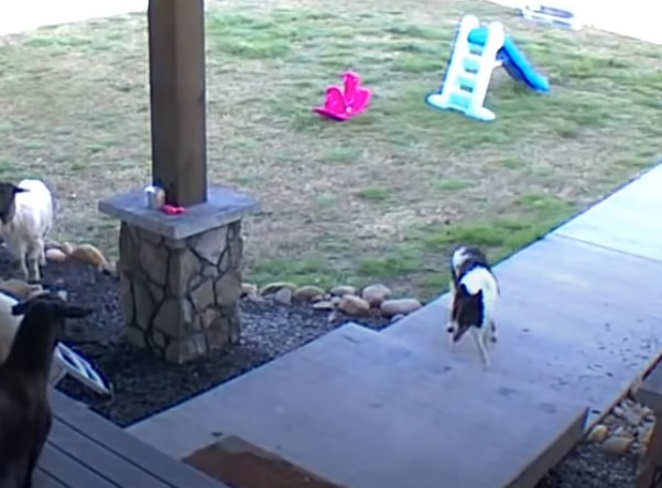 A text overlay in the video humorously reads, “Good boy Doc??” as the dog continued to maintain his self-appointed role, corralling the sheep right at the doorstep.