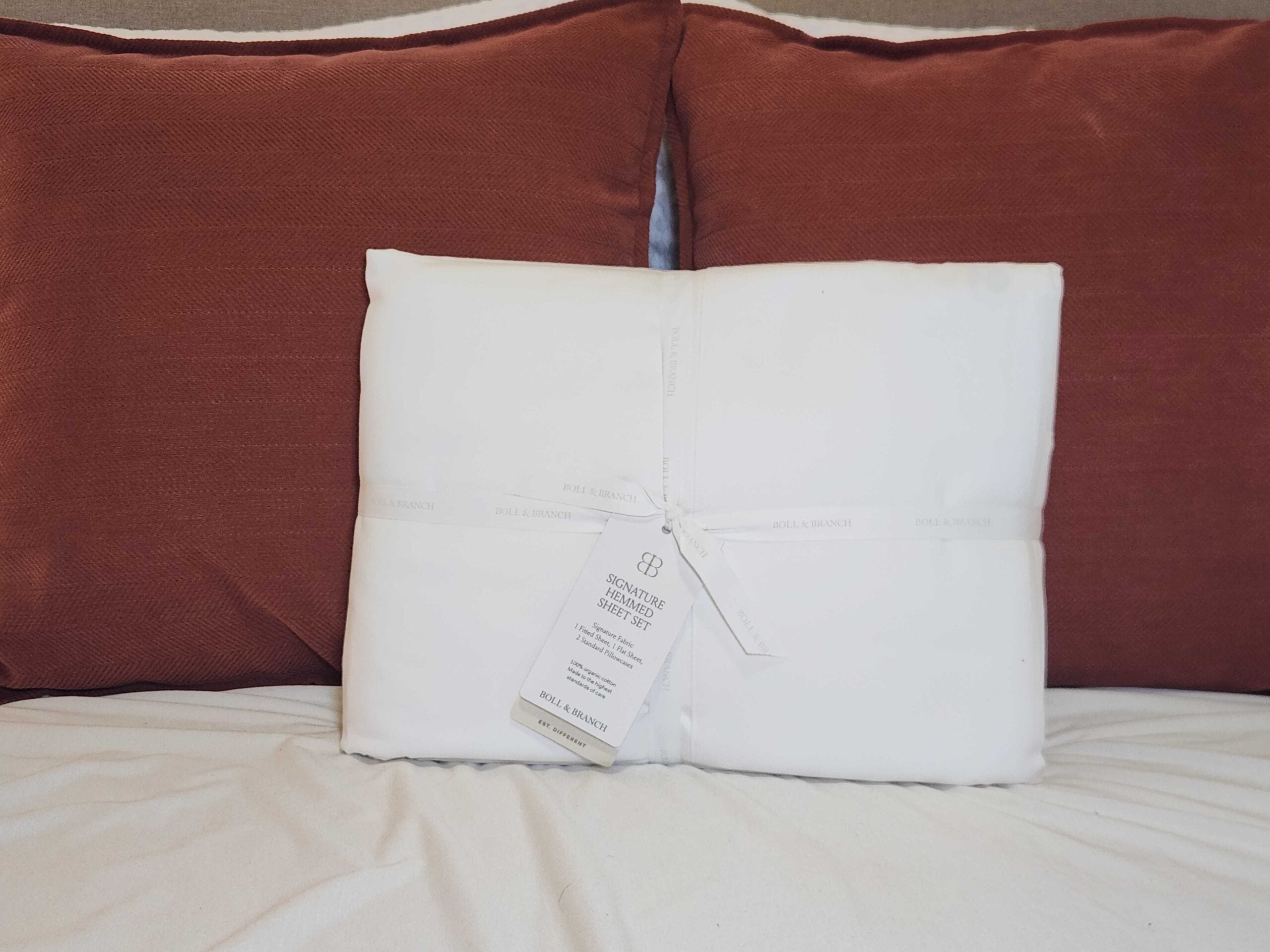 Let’s be clear upfront: the Boll & Branch Signature Hemmed Sheet Set is a cotton sheet in a bamboo review — and that distinction matters. These are made from organic long-staple cotton in a sateen weave, and to their credit, they’re the best-feeling cotton sheets we’ve handled. The fabric is smooth, well-constructed, and resists pilling better than most cotton competitors.